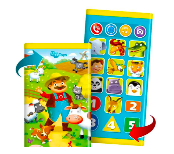 Igračka-telefon Okreni Nauči omogućava deci da dođu do prvih saznaja o životinjama, slušaju pesme i melodije.